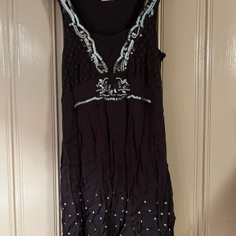 Merket er Salto ( fant ikke navnet på lista)bunadskjole og tilhørende skjorte for jente i størrelse 152 (12 år). Bunadskjolen er flerfarget med mørk hovedfarge og lyse partier, dekorert med bånd og hekter foran. Skjorten er hvit med knapper og blondekant. Begge deler er i bomull, egnet som fest- og høytidstøy for barn.