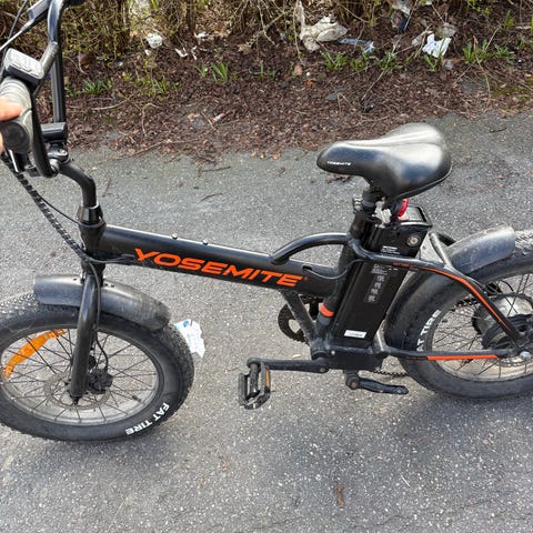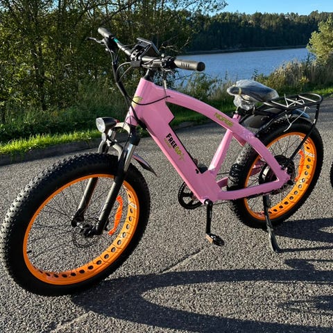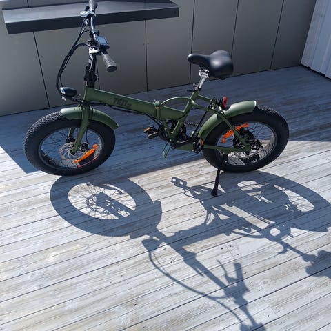 Brukt elektrisk, fulldempet fatbike selges. Eg er usikker på merke, det står ikkje noe på sykkelen. Lys foran. Kan kjøres uten å trø, bare å vri på gasshåndtaket. Sammenleggbar.