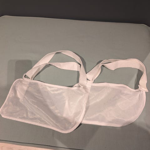 Pent brukt, men et hull i det ene ermet.