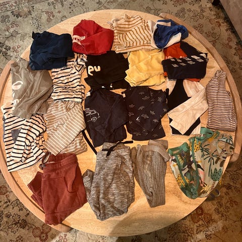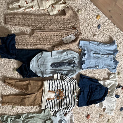 5 bodyer (den ene er i str 86, men den er liten - min på 86 passer ikke i den, så den er mer en 80)