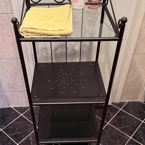 Baderomshylle og benk i tre selges samlet
