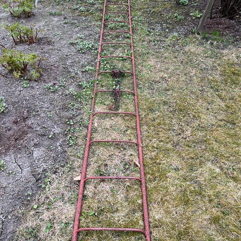 Takstige i metall, i svart utførelse. Stigen har faste trinn og sidevanger i metall, med feste i den ene enden. Egnet for montering på tak eller som adkomststige der det er behov for en fast og stabil løsning. Lengde 550cm.