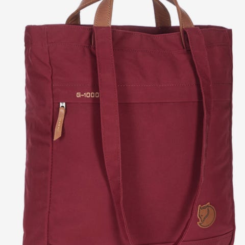 Fjällräven Totepack No. 1 veske i rød farge. Unisex-modell laget i slitesterkt stoff (G-1000). Vesken har bærehåndtak og skulderstropper slik at den kan bæres både i hånden og på ryggen. Utvendig glidelåslomme på fronten og åpent hovedrom med innerlomme. Egnet til hverdagsbruk, skole, jobb eller som ekstra bag på reise.