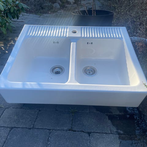 Kjøkkenvask med enkel kum og integrert avrenningsfelt. Vasken er rektangulær og har to hull for montering av armatur og eventuelt tilbehør. Farge: grå. Passer til innfelling i benkeplate på kjøkken, vaskerom eller lignende bruksområder hvor det er behov for en praktisk vaskeløsning.