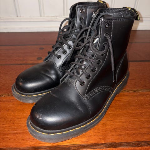 Selger et par klassiske, sorte Dr. Martens boots i størrelse 39. De har normal bruksslitasje men er fortsatt pene, utrolig komfortable og solide. Passform og såle i god stand.