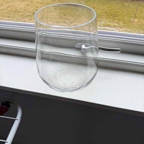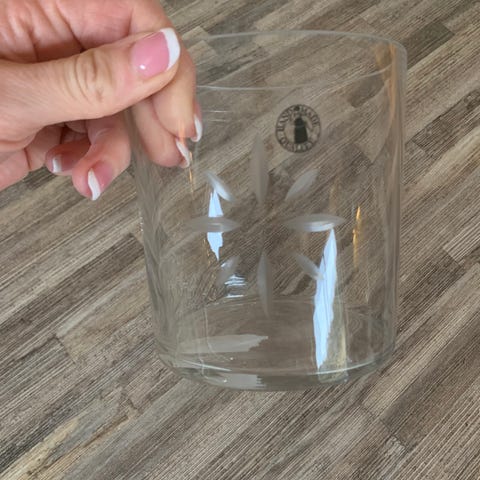 Dette er en ikonisk Iittala Alvar Aalto-vase i klart glass, ofte referert til som Savoy-vasen.