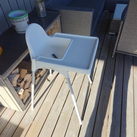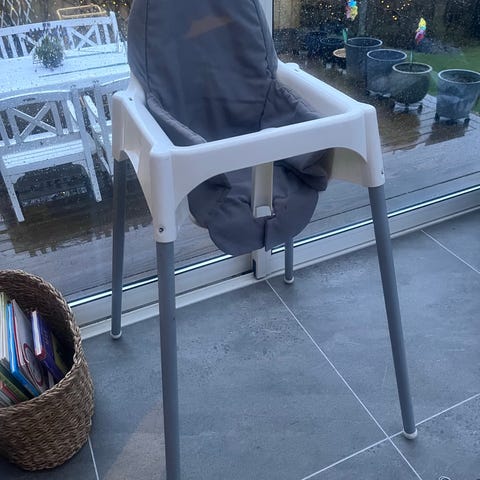 IKEA BLÅMES høy barnestol svart med hvit brett