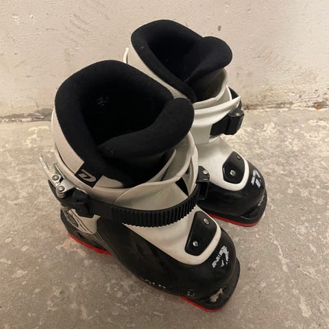 Dalbello alpinstøvler for barn i fargene hvit, svart og rød selges rimelig på tampen av sensongen.