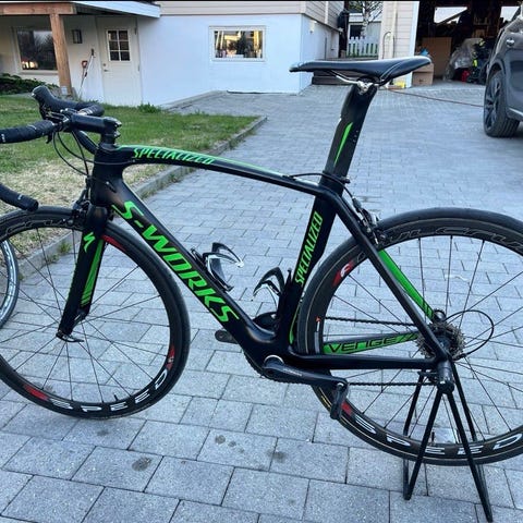Vurderer salg av en svært pen og gjennomført Specialized Venge med et unikt uttrykk. Rammen er omlakkert av Eternal Custom og har fått et eksklusivt “S-Works”-design – men det presiseres at dette er en Specialized-modell, ikke en original S-Works.