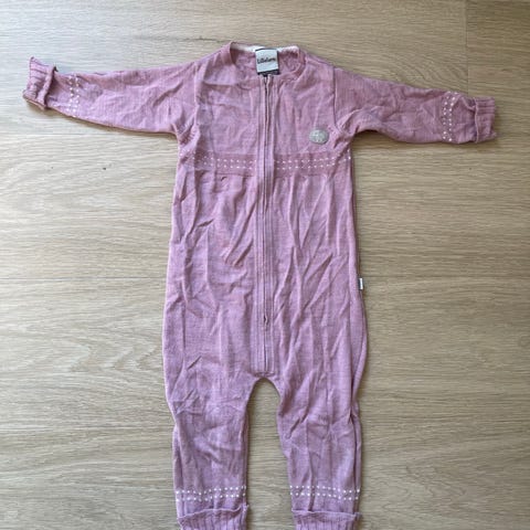 Rosa lillelam ulldress i 100% merinoull, str 86 selges. Ulldressen er i fin stand med unntak av kragen bak, der den har løsnet i sømmen (se eget bilde). Dette kan nok fikses enkelt ved hjelp av nål og tråd