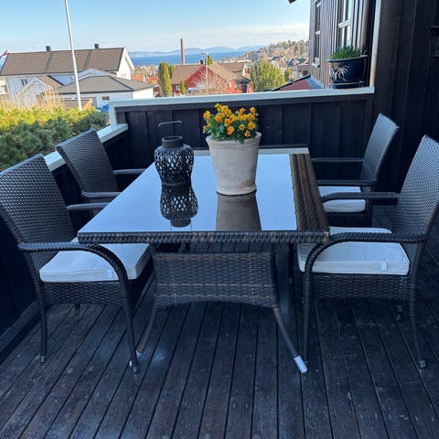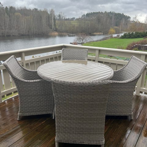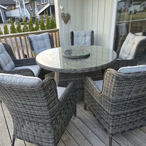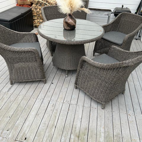 Hillerstorp rundt hagebord med 4 stoler brun rotting