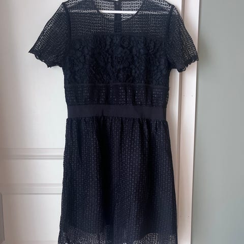 FWSS kjole for dame i størrelse L. Kjolen er svart og laget hovedsakelig av bomull, med innslag av nylon og spandex i overdelen ifølge vaskelappen. Underdel og fôr er i 100 % bomull. Modellen har korte ermer og enkel, rett fasong. Egnet som hverdagskjole eller til enkle anledninger. Materialet bør håndvaskes i henhold til vaskeanvisningen på plagget.