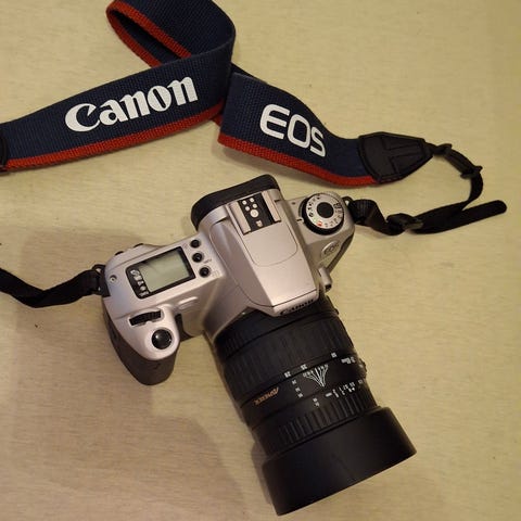 Canon EOS 3000 analogt speilreflekskamera i svart. Kamerahuset er beregnet for 35 mm film og har Canon EF-fatning for utskiftbar optikk. Modellen har innebygd lysmåling, programhjul med ulike opptaksmoduser, blitskontakt i toppen og LCD-skjerm på baksiden for visning av innstillinger. Leveres som kamerahus med kamerahusdeksel, og kan brukes med kompatible Canon EF-objektiver og tilbehør for analog fotografering.