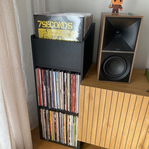Lekker og stilren hylle fra Hübsch i eik og sort bakvegg selges. Hyllen er både praktisk og dekorativ, og passer perfekt til bøker, vinylplater eller interiør. Den åpne løsningen gir et ryddig og eksklusiv uttrykk. Passer perfekt i smale gaver eller langs vegger.