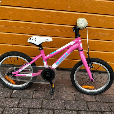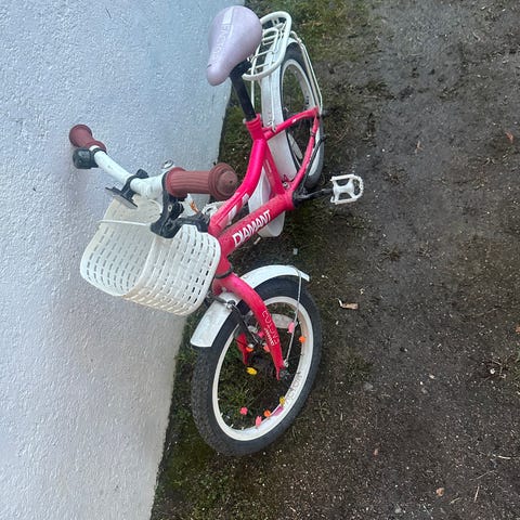 Selger en brukt sykkel for barn med montert støttehjul. Passer barn 3-6 år