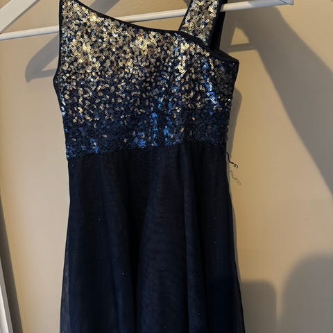 Den mørkeblå størrelse 134.