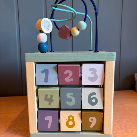Flott aktivitetskube i tre fra Trixie. Aktivitetsleken byr på fem artige og utfordrende aktiviteter som kulelabyrint, puslespill med dyr, kuleramme, og bevegelige tannhjul. Kulelabyrinten øverst kan snus opp ned, sånn at leken tar mindre plass når den ikke brukes. Med sine mange egenskaper, garanterer aktivitetskuben timevis med moro, samtidig som den fremmer romforståelse og finmotorikk.