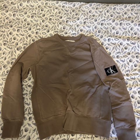 Calvin Klein Jeans genser for herre i størrelse M. Genseren er hvit og laget i bomull. Modellen har rund hals, lange ermer og ribbestruktur i stoffet. På ermet er det en påsydd logo-patch med CK Jeans. Passer til hverdagsbruk og kan kombineres med både jeans og chinos.