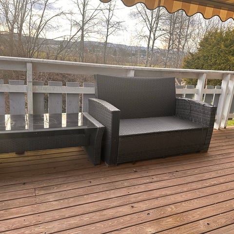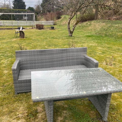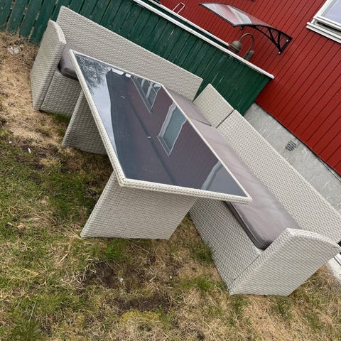 Hjørnesofa med bord hagemøbelsett gis bort mot henting