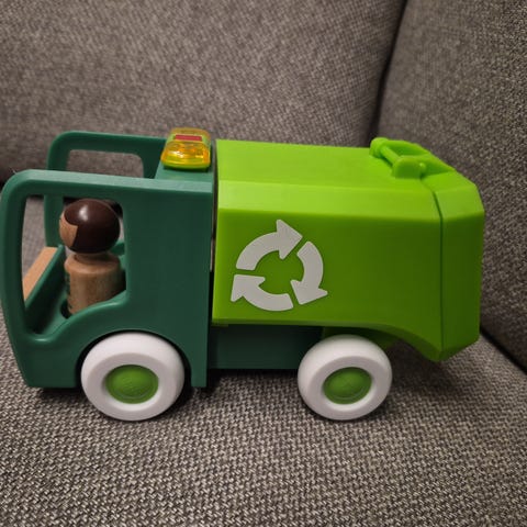 En flott søpplebil fra Brio med lys og lyd.