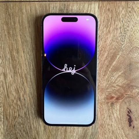 Apple iPhone 14 Pro mobiltelefon med 256 GB lagringsplass i farge mørk lilla selges. 83% batteri.
