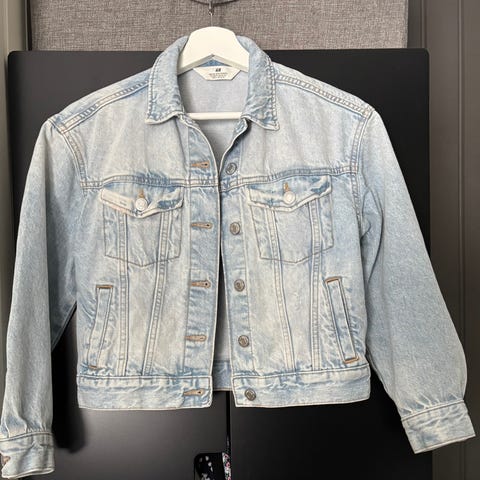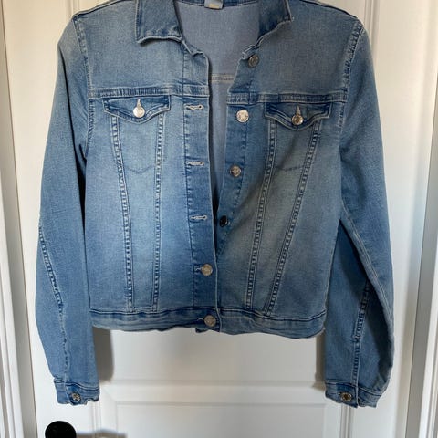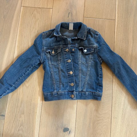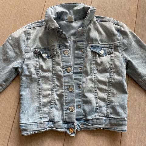 H&M olajakke for barn i størrelse 134. Jakken er unisex og i blå vask. Materiale i bomull (denim). Klassisk modell med krage og knappelukking foran. Passer til hverdagsbruk og som lett ytterlag i overgangssesonger.