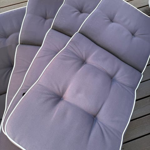 Nesten ubrukte hageputer med hoy rygg, uten smuss eller skader, selges som sett.