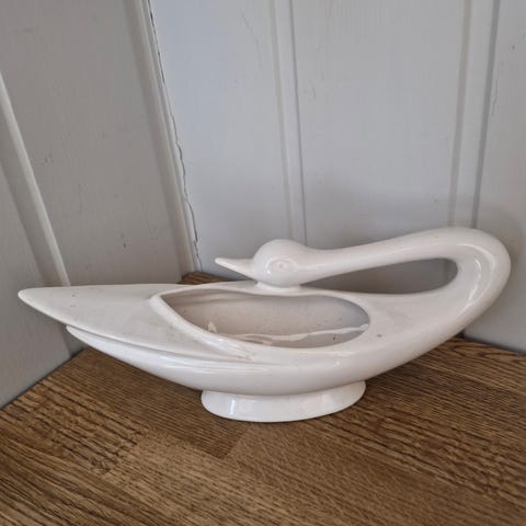 Jonathan Adler dekorasjonsfat utformet som en dachshund i hvit keramikk. Fatet har flere inndelte rom langs ryggen som kan brukes til servering av småretter, snacks eller som oppbevaring av små gjenstander. Overflaten har en matt, glatt finish med enkle, rillete detaljer langs sidene som fremhever hundeformen. Produktet er merket med Jonathan Adler-stempel på undersiden og fungerer både som bruksgjenstand og som dekorativ pyntegjenstand