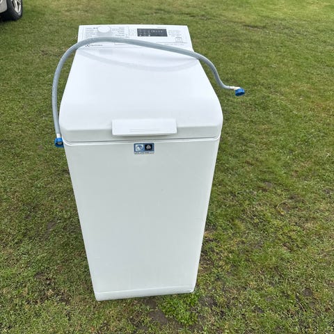 Ytre utførelse er i hvit plast med blå håndtak/detaljer. Innsiden er i lys plast med ribbet bunn for stabil plassering av innhold. Det følger med strømtilkoblinger i henhold til det som vises på produktet og esken.