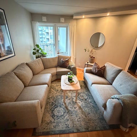 Selger med tungt hjerte min modulsofa pga flytting. Sofaen er modul og kan settes sammen slik det passer rommet ditt.