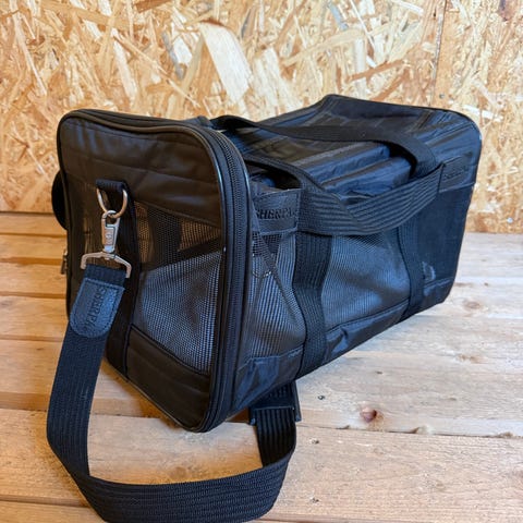 Fin og veldig lite brukt sherpa reisebag i størrelse L. Den er perfekt om du skal ha med deg en liten hund eller katt inn på flyet eller til andre reiser.