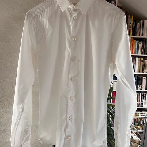 Benetton herreskjorte S grønn bomull. Skjorten har smale striper i grønn og hvit. Modellen har «Kinakrage», lang arm og brystlomme på venstre side. Passer til hverdagsbruk eller mer uformelle anledninger kombinert med bukse eller jeans.