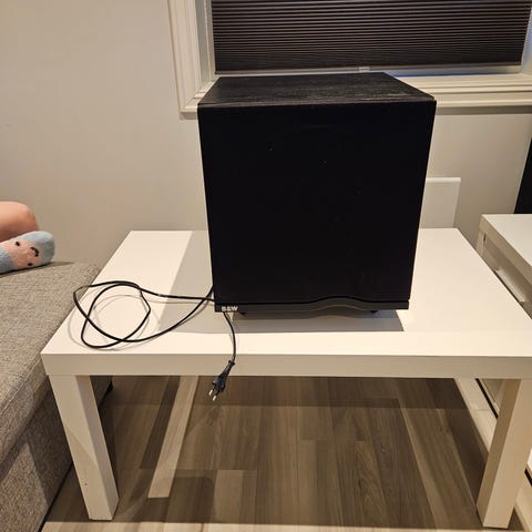 B&W ASW608 subwoofer selges grunnet oppgradering. Denne spiller både dypt og med bra kraft til tross for størrelsen. Ukjent alder, har ikke original emballasje eller kvittering, samt at to av pinnene til dekslet ble knekt under transport til meg, selges derfor billig. Nypris på Hifiklubben er 8999,-