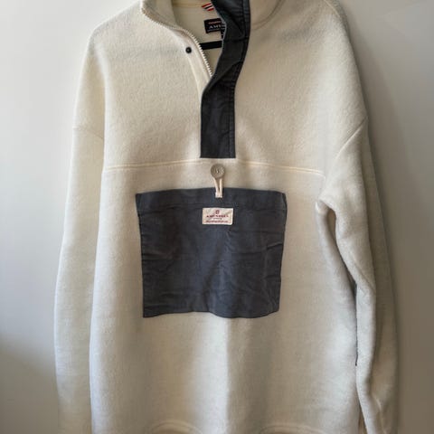 Amundsen hettegenser for herre i opprinnelig størrelse M, men den var krympet i vask så passer mye bedre en S. Den kan bli strekt ut igjen til en M, men det har jeg ikke tatt meg tid til.