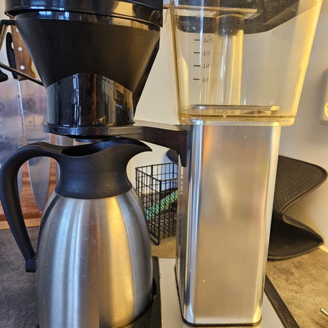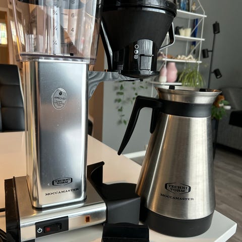 Moccamaster KB-Thermo kaffetrakter med modellbetegnelse KB-Thermo 1,25 l. Kaffetrakteren har termoskanne i stål og brygger opptil 1,25 liter kaffe. Effekt på 1450 W og tilkobling 230 V, 50–60 Hz. Apparatet er produsert av Technivorm i Nederland og er beregnet for vanlig husholdningsbruk. Passer til brygging av filterkaffe i middels store mengder, for eksempel til husholdning eller mindre kontor.