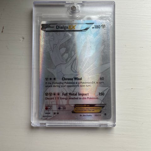 Pokémon Dialga Basic SL2 Call of Legends Shiny holografisk samlekort ungraded. Kortet er pent bevart med noe hvit i kantene på baksiden, se bildene.