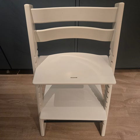 Selger en strøken Tripp Trapp-stol i natur. Stolen fremstår i pent og godt tilstand - med minimale bruksmerker.