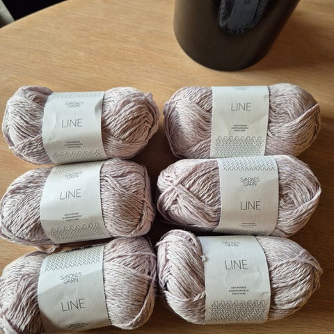 Sandnes Garn Line og Tykk Line garnnøster i ulike farger. Bildene viser blant annet Line i farge 1015 og Tykk Line i farge 2113, i lyse naturtoner og gult. Garnet leveres i nøster egnet til strikking og hekling av plagg og tilbehør. Passer til prosjekter som gensere, topper, barneplagg og interiørartikler, avhengig av oppskrift og strikkefasthet. Garnnøstene selges samlet som et parti med blandede farger og typer innen Line-serien fra Sandnes Garn.