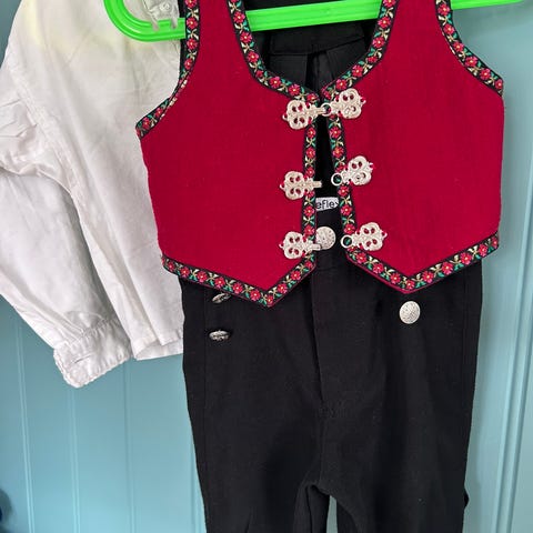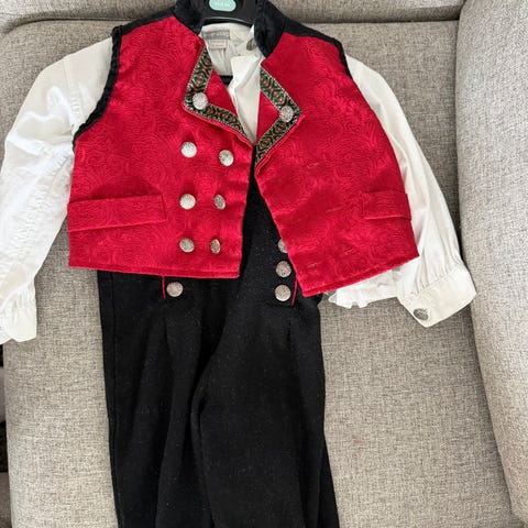 Brukt guttebunad selges. Er håndvasket. Trenger en god runde med strykejernet :)