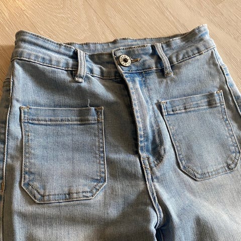 Wrangler jeans for dame i størrelse W28L34.Buksen er i lys blå denim av bomull. Klassisk firelommer med baklommer med karakteristisk Wrangler-søm og beltehemper i linningen. Litt mørere tråd i sømmen nederst på juksa og ellers fine feminine detaljer.