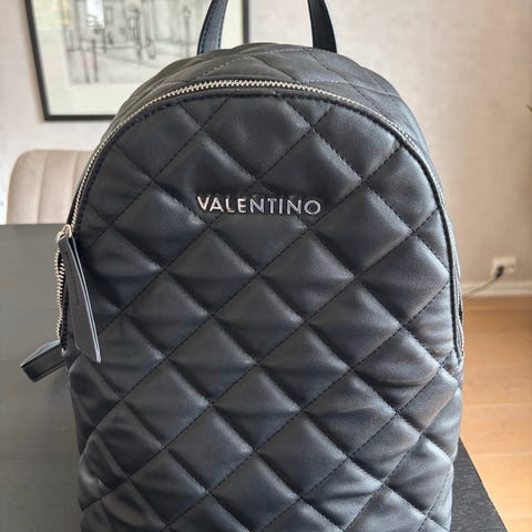 Valentino sekk kjøpt på zalando for noen år siden. Kvittering følger med. Sekken er knapt brukt og har ligget i klesskapet. Den har fått noe hvitt på ene skulder reima, se bildet.