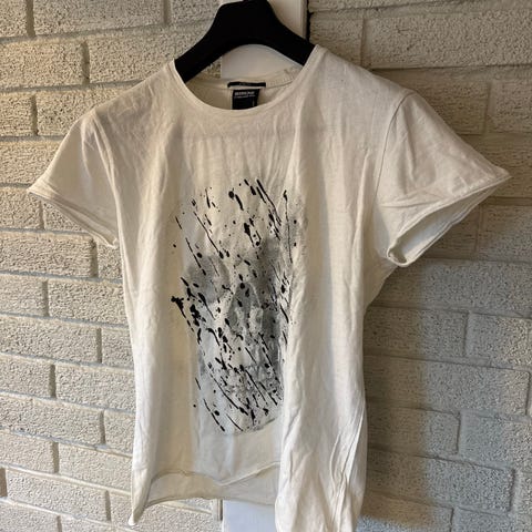Adidas T-skjorte i hvit bomull for herre i størrelse M. T-skjorten har rund hals og kort erm. På brystet er det et rektangulært trykk med Adidas-logo og palmemotiv i flere farger. Materialet er 100 % bomull, som gir et mykt og lett plagg egnet til hverdagsbruk eller fritidsaktiviteter. Baksiden er ensfarget hvit uten trykk. Nesten ikke brukt.