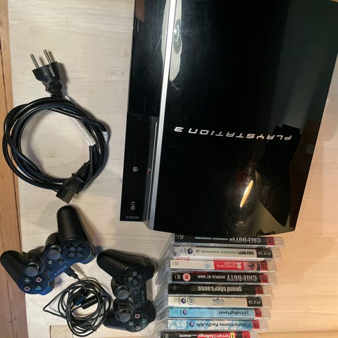 Sony Playstation 3 spillkonsoll med tilbehør og flere spill.