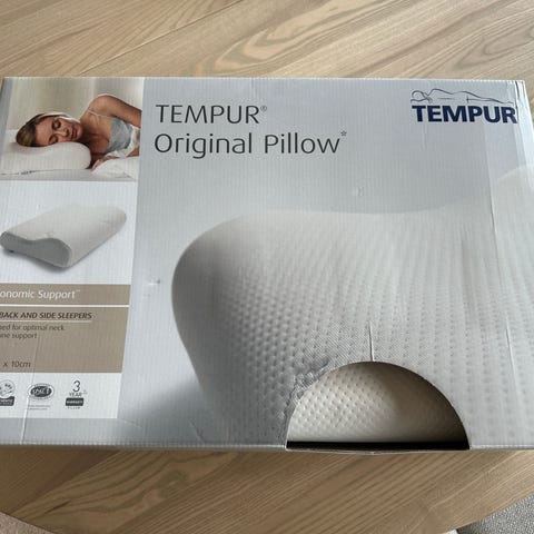 Tempur ergonomisk hodepute i hvit farge, svært lite brukt, da vi har sjelden overnattingsgjester. Den framstår som splitter ny.