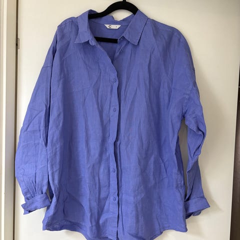 Lollys Laundry skjorte for dame i størrelse XL. Skjorten er blå og laget av 100 % polyester. Modellen har klassisk krage, lange ermer med mansjetter og knappelukking foran. Stoffet er lett og noe gjennomsiktig, egnet til bruk alene eller over annet tøy. Passer til hverdagsbruk eller mer formelle anledninger avhengig av styling.