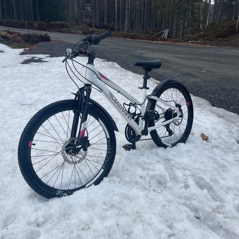 Sykkelen er pent brukt, men har noen merker i lakken.