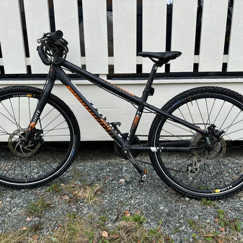 Terrengsykkel til junior med 24" hjul. Lett og sterk aluminiumsramme. Komponenter i aluminium. Presist Shimano 1x7-girsystem og kraftige Tektro mekaniske skivebremser. Passer barn fra ca. 8-12 år, mellom 127-142 cm høyde. Vekt: 11,2 kg.