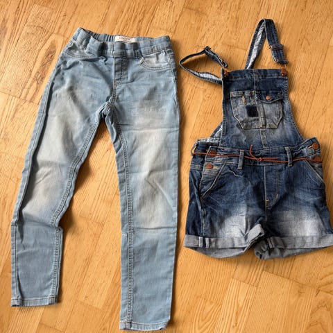 - Dongeribukse med avtakbare seler i steinvasket mellomblå denim fra Lindex - heller ikke så mye brukt, men slitt på ene kneet (se bilde)