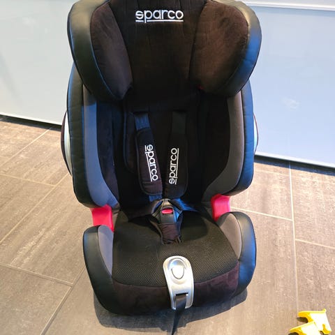 Sparco barnesete størrelse 9-36kg i svart og grå farge. Setet er et fremovervendt bilsete for barn, med høy rygg og justerbar hodestøtte. Det har sidebeskyttelse og er godkjent for bruk med bilens belte. Egnet for montering i bilsete med universell godkjenning i vektområdet som er angitt på produktets merkning. Meget pent brukt. Kostet ny 3000.