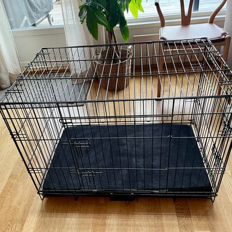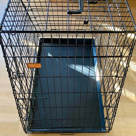 Bredde 90 cm, høyde 65 com, dybde 55 cm. Passer for mellomstor hund.